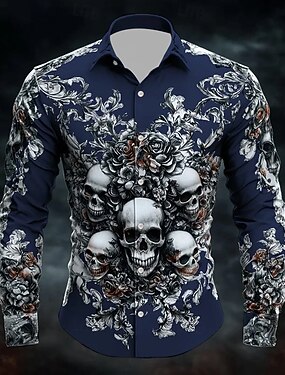Camicia costumi da uomo Skull camicia abbottonata camicia da cerimonia casual maniche lunghe stile gotico scuro vacanza estate primavera colletto stampa 3D camicie nere bianche blu scuro