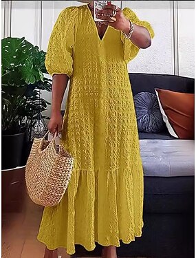 Per donna Abito Midi Abito a trapezio Casual Quotidiano Vestibilità comoda Semplice Mezza Manica Scollo a V Nero Bianco Giallo Estate Primavera Autunno
