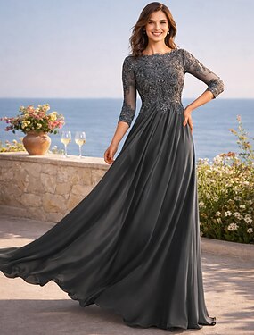 Abito lungo A-Line per ospiti di matrimonio abiti formali da sera abito da cerimonia per la madre della sposa con maniche 3/4 scollo tondo elegante formale per ospiti di matrimonio con pieghe in