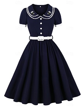 Retrò Vintage Anni 1950 Rockabilly Vestito Abito Swing Maniche corte Costume Per donna Carnevale Mascherata Abbigliamento quotidiano Addio al Nubilato Adulti Vestito