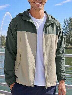 Per uomo Blocco di colori Giaccia da corsa Giacca da esterno Giacca con cappuccio Estate Primavera Autunno Tasca Cerniera completa Manica Lunga Protezione Solare Antivento Leggero Traspirante Pesca