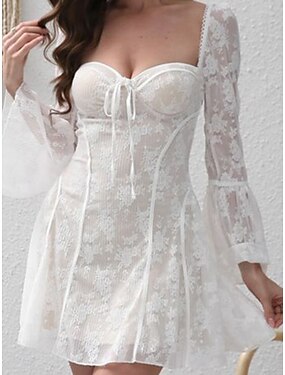 Per donna Mini Abito Abito in pizzo bianco Abito con occhielli Elegante Moda Moderno All'aperto Vacanza Uscire Vestibilità regolare Semplice Manica Lunga Scollo a V Nero Bianco Viola Estate Primavera