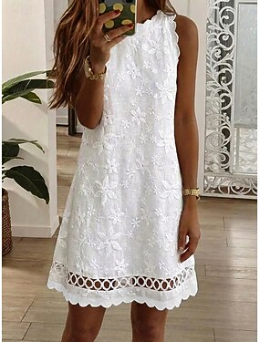 Per donna Mini abito Abito Boho Abito in Pizzo Vestito Estivo Abito Bianco Moda Quotidiano Vestibilità regolare Floreale Semplice Senza Maniche Girocollo Collo Alto Bianco Estate Primavera