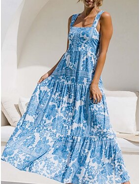 Per donna Abito maxi Abito a trapezio Abito Sottoveste Vacanza Casual All'aperto Uscire Vestibilità comoda Floreale Grafico Senza Maniche Spalline sottili Blu blu navy Nero Azzurro cielo Estate