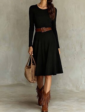 Per donna Abito Lungo Maxi Abito Abito nero Vestito Casual Elegante Moda Moderno Quotidiano Uscire Weekend Vestibilità regolare Semplice Manica Lunga Girocollo Nero Bianco Vino Marrone Primavera