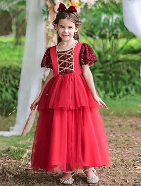 Abito da damigella d'onore bambina Ragazze Abito formale Abiti da sposa Feste Matrimonio Formale Adorabile Principessa Bello Patchwork Rete Tinta unica Manica Corta Girocollo Blu Rosso Dai 4 anni in
