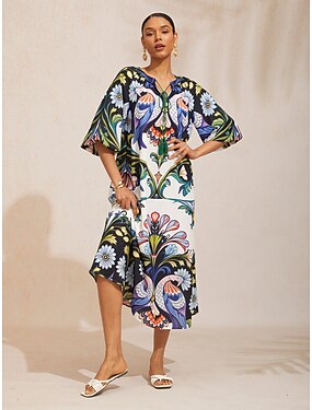 caftano in chiffon fluido boho paisley