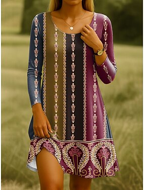 Per donna Abito al ginocchio Vestito T-Shirt Abito a trapezio Casual Vestibilità regolare Grafico Boho Paisley Damasco Manica Lunga Girocollo Scollo Tondo Blu Rosa Arancione Verde Primavera Autunno
