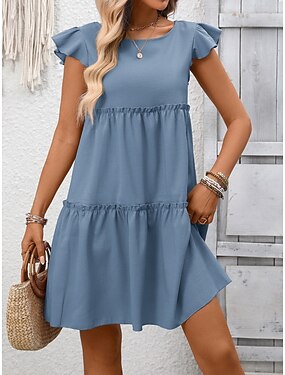 Per donna Mini Abito Vestito Casual Abiti Peplo Elegante Moda Moderno All'aperto Vacanza Uscire Vestibilità comoda Semplice Manica Corta Girocollo Blu Nero Verde militare Borgogna Estate Primavera