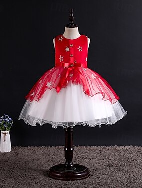 Abito da damigella d'onore bambina Ragazze Abito formale Abiti da sposa Feste Matrimonio Formale Adorabile Formale Bello Patchwork Rete Stella Senza Maniche A V Nero Rosa Dai 4 anni in su