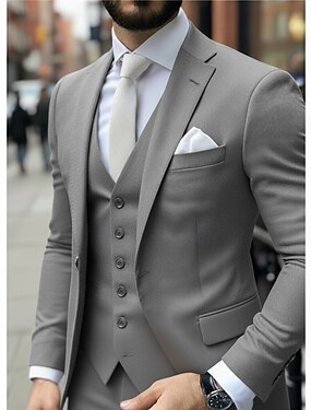 Uomo Abiti da lavoro Casuale Matrimonio Nero Borgogna Primavera, Autunno, Inverno, Estate Tuta Bavero classico Quotidiano Affari Tinta unita Vestibilità su misura 3 pezzi Monopetto a un bottone