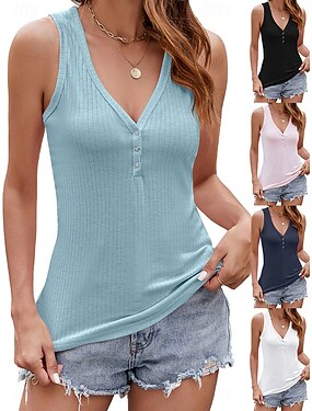 Per donna Maglietta Canotta Patchwork Tinta unica Elegante Classico Casual Senza Maniche Scollo a V Top Regolari Quotidiano Uscire Weekend Nero Bianco Rosa Vino Blu marino Estate Primavera