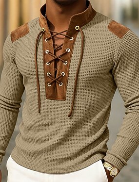 T-shirt waffle da uomo, maglietta waffle, maglia Henley a maniche lunghe con cappuccio e lacci, autunno inverno primavera &autunno tinta unita blocco di colore tradizionale / vintage casual coulisse