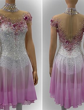 Abito da pattinaggio artistico Per donna Pattinaggio sul ghiaccio Vestito Rosa Patchwork Schiena aperta Alta elasticità Allenamento Competizione Vestiti da pattinaggio sul ghiaccio Classico Cristallo