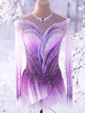 Abito da pattinaggio artistico Per donna Pattinaggio sul ghiaccio Vestito Viola Patchwork Foro per il pollice Elasticizzato Allenamento Competizione Vestiti da pattinaggio sul ghiaccio Classico