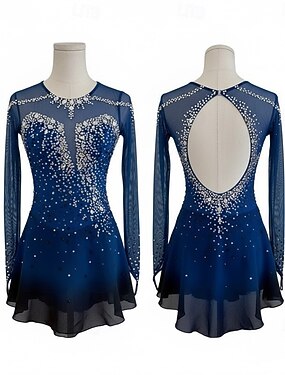 Abito da pattinaggio artistico Per donna Pattinaggio sul ghiaccio Vestito Blu Patchwork Schiena aperta Elasticizzato Allenamento Competizione Vestiti da pattinaggio sul ghiaccio Classico Cristallo