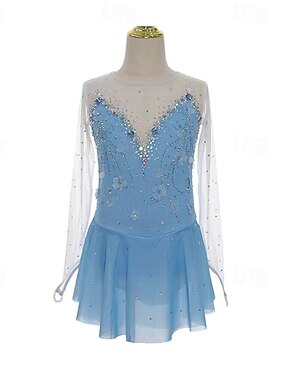 Abito da pattinaggio artistico Per donna Ragazze Pattinaggio sul ghiaccio Vestito Azzurro cielo Patchwork Foro per il pollice Rete Spandex Elasticizzato Allenamento Professionale Competizione Vestiti