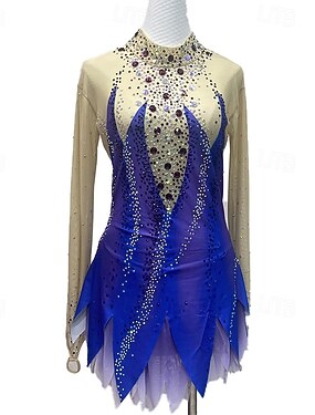 Vestito da pattinaggio artistico Per donna Da ragazza Pattinaggio sul ghiaccio Vestiti Blu Reale Collage Foro per pollice Retato Elastene Elasticizzato Addestramento Da allenamento Professionale