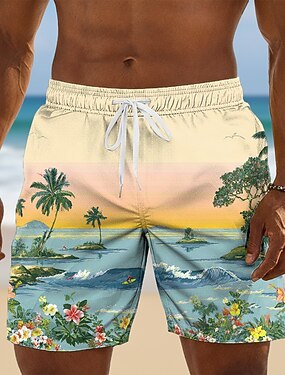 Per uomo Albero di Cocco Piante Tropicali Costumi da bagno Pantaloncini da mare Pantaloncini da Surf Misura del girovita medio Hawaiano Abbigliamento da Spiaggia Vacanza Coulisse fodera in rete