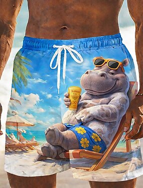 Per uomo Cartoni animati Elefante Ippopotamo Costumi da bagno Pantaloncini da mare Pantaloncini da Surf Misura del girovita medio Divertente Camicia hawaiana Vacanza al Mare Tasche Laterali fodera in