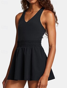 Per donna Tinta unita Abito da tennis con pantaloncini e reggiseno incorporati Abito sportivo Abito polo da golf Senza Maniche Vita alta Elastico Traspirante Tennis Golf Pickleball Scollo a V Vestito
