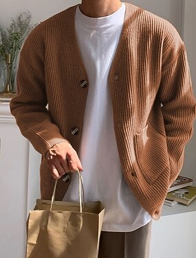 Per uomo Felpa Maglione elegante Cardigan Maglione a maglia A Coste Maglia Top Regolari Lavorato a maglia A coste Semplice Scollo a V Moda Scialli Casuale Abbigliamento quotidiano Abbigliamento