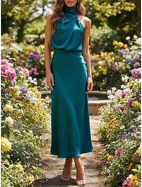 Tubino Colonna Lunghezza al pavimento Abito da invitata a nozze Abito Formale Abito da sera Abiti da Ballo Elegante Senza Maniche Monospalla Balli di fine anno Formale Raso Tessuto Elasticizzato con