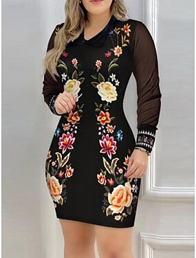 Per donna Mini Abito Tubino Casual All'aperto Uscire Vestibilità aderente Floreale Girasole Manica Lunga Scollo a V Giallo / nero Nero Giallo Primavera Autunno