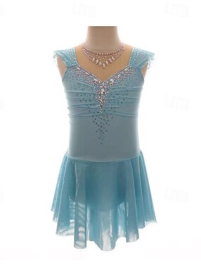 Abito da pattinaggio artistico Per donna Ragazze Pattinaggio sul ghiaccio Vestito Azzurro cielo Patchwork Foro per il pollice Rete Spandex Elasticizzato Allenamento Professionale Competizione Vestiti
