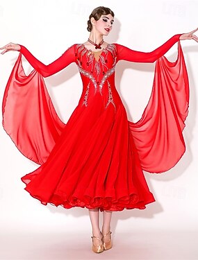 Balli da sala Abito Cristallo / strass A fantasia Per donna Prestazioni Addestramento Manica lunga Retato Organza Velluto