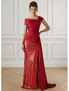 Linea ad A Tubino Colonna Strascico a Terra Abiti da Ballo Abito da Sera Da principessa Abito formale Elegante Scintillante Stile Celebrità Manica Lunga Monospalla Festa in giardino Matrimonio Raso