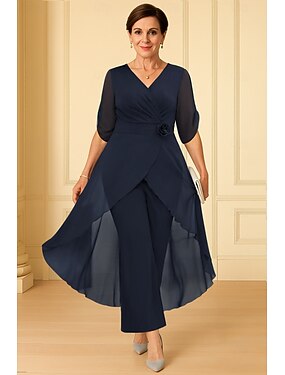 Tubino Colonna Tuta Completo Pantalone Lunghezza al pavimento Abito da cerimonia per signora Mezza Manica Girocollo Elegante Semplice Casual Formale Ospite di nozze Ricevimento di matrimonio Chiffon