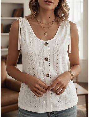 Per donna Canotta Traforato Semplice Moda Elegante Classico Senza Maniche Girocollo Top Regolari Quotidiano Uscire Weekend Nero Bianco Rosa Cachi Azzurro Estate Primavera