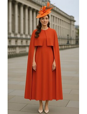 Linea ad A Set di Abiti Lunghezza Tè Abito da invitata a nozze Abito da cerimonia per signora Senza Maniche Manica Corta Girocollo Elegante Vintage Semplice Formale Ospite di nozze Crêpe Tessuto