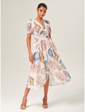 Per donna Abito Midi Abito Floreale Abito Stampato Classico Moderno Quotidiano Vacanza Ferie Vestibilità regolare Fiore Mezza Manica Girocollo Bianco Giallo Rosa Estate