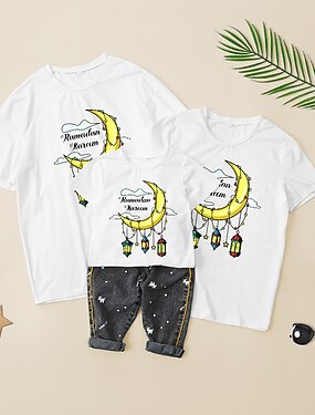 Sguardo di famiglia Ramadan maglietta Alfabetico Stella MOON Informale Girocollo Bianco Manica corta Mamma e me abiti Giornaliero Abiti coordinati