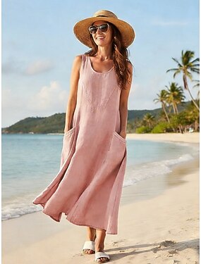 Per donna Abito maxi Abito a trapezio Abito Estivo Casual Quotidiano Vestibilità regolare Semplice Senza Maniche Scollo a V Blu Rosa Beige Estate
