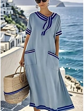 Per donna Abito Midi Abito maxi Abito Estivo Vacanza Casual Boho Quotidiano Ferie Data Vestibilità comoda Semplice Manica Corta Scollo a Cascata Scollo a V Blu Bianco Estate Primavera