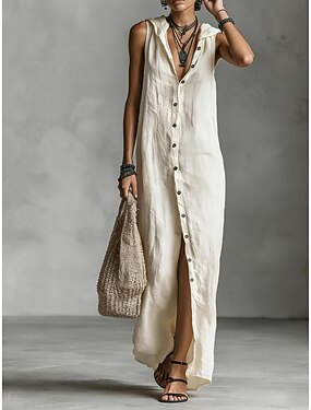 Per donna Abito maxi Abito Camicia Vestito Casual Abito in cotone e lino Elegante Moda Moderno All'aperto Vacanza Uscire Vestibilità regolare Semplice Senza Maniche Con Cappuccio Nero Rosa polverosa
