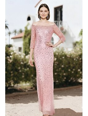 Tubino Colonna Lunghezza al pavimento Abito Formale Abito da sera Abito da Sera Elegante Brillanti Manica 3/4 Senza Spalle Matrimonio San Valentino Con Paillettes con Paillettes