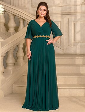 A-Line lunghezza intera abito da invitata di nozze abiti formali abito a svasatura abito madre della sposa manica mezza collo a V elegante vintage lussuoso con pieghe e ricamo
