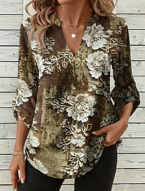 Per donna Camicia Blusa Stampato Floreale Grafico Bohemien Elegante Classico Manica Lunga Scollo a V Top Regolari Quotidiano Ferie Uscire Marrone Estate Primavera Autunno