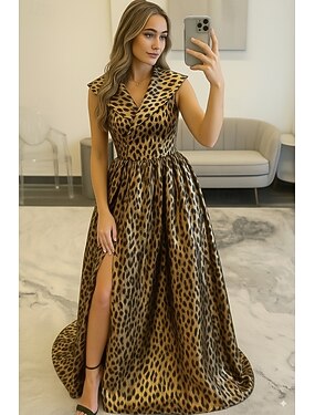 Linea ad A Lunghezza al pavimento Abito da Sera Da principessa Abito formale Elegante Spacco Alto Abito da sera stile impero Senza Maniche Scollo a V Matrimonio Formale Tasca Raso con Tasca