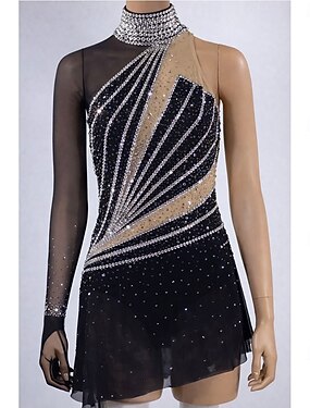 Abito da pattinaggio artistico Per donna Pattinaggio sul ghiaccio Vestito Nero Patchwork Schiena aperta Alta elasticità Allenamento Competizione Vestiti da pattinaggio sul ghiaccio Classico Cristallo