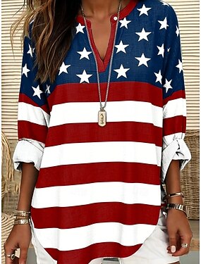 Giorno dell'Indipendenza Americana Per donna Camicia Blusa Stampato Floreale Grafico Bandiera Vintage Quotidiano Elegante Manica Lunga Girocollo Scollo a V Top lunghi Quotidiano Uscire Rosso Viola