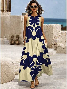 Per donna Abito Midi Vestito Estivo Vacanza Casual Boho Ferie Abito Estivo Abito Primaverile Vestibilità comoda Semplice Senza Maniche Girocollo Blu Giallo Rosso Marrone chiaro Estate Primavera