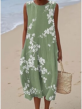 Per donna Abito Midi Abito a Tubino Vestito Estivo Abito a trapezio Vacanza Casual Boho Spiaggia Feste Vestibilità comoda Floreale Grafico Senza Maniche Girocollo Blu Viola Verde Cachi Estate