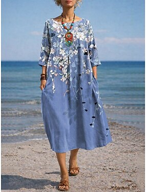 Per donna Abito maxi Abito a trapezio Casual Quotidiano Data Uscire Vestibilità comoda Floreale Grafico Manica 3/4 Girocollo Blu Verde chiaro Viola Verde Estate Primavera