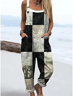 Per donna Tuta Attivo Grafico Senza Maniche Senza maniche Collo quadrato Patchwork Tasca Quotidiano Spiaggia Vestibilità comoda Arancione Verde Nero Estate