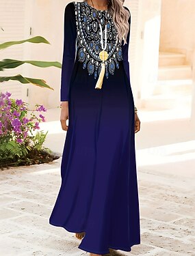 Per donna Abito maxi Abito Boho Vestito Casual Abito a trapezio Abito Stampato Vintage All'aperto Vacanza Weekend Vestibilità comoda Grafico Blocco di colori Manica Corta Scollo a V Blu Giallo